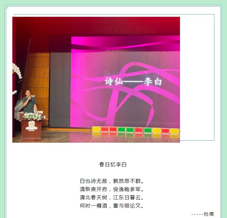走近诗仙李白 感悟诗歌之情